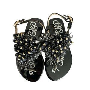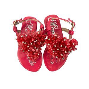 Marilyn Moda Toddler Girls Size 5 Flower Bead Design T-Strap Sandals 2 Pair - 1 Pink 1 Black Faux Patent Leather. New without tags. Smoke free environment.