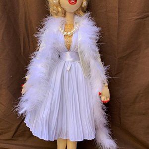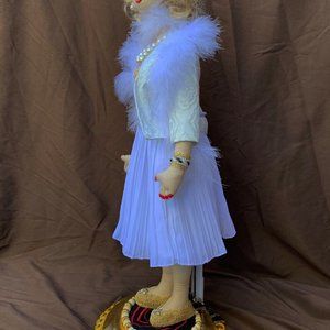 Meet Marilyn Monroe. Beautifully made 23 - inch doll, presenting an image of beloved and most stunning blond American actress and model. The icon of beauty and sensuality; the sexiest woman ever lived. This doll is handmade from scratch. The body is made of durable light-color 100% cotton and golden bodysuit. There is no glue, no paints. Everything hand embroidered, including her crocheted jewelry and little purse, adorned with pearl beads. Her wardrobe has a deeper meaning that just an outfit.