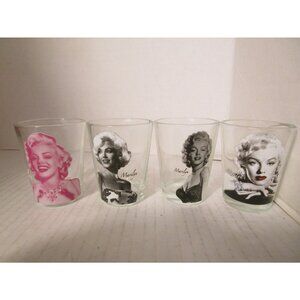 Excellent Looks LIKE NEW condition. Have been displayed inside a glass case. Set of 4 different poses of Marilyn Monroe on 2.5" shot glasses. From a clean and smoke free Marilyn Monroe collection.