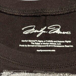 The product is a Marilyn Monroe juniors size XL black short sleeve t-shirt with a graphic design featuring the iconic character of Marilyn Monroe. Made from a blend of polyester and cotton, this pullover tee is machine washable and lightweight, making it suitable for all seasons. The regular fit t-shirt is perfect for casual occasions and travel, showcasing themes of classic, rock, music, and 50s/60s style. With a round neckline and tagless design, this tee is a stylish and comfortable addition to any wardrobe.