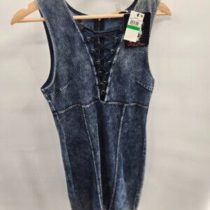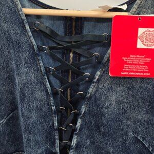 Marilyn Monroe Medium Denim Fitted Bodycon Lace Up Mini Dress