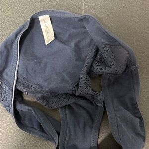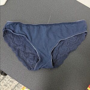 Stylish navy blue panties with lace trim. Comfortable and elegant design.