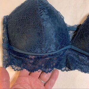 Pretty lace bralette in the color of vivid indigo. It is NWT & has no damage or flaws.