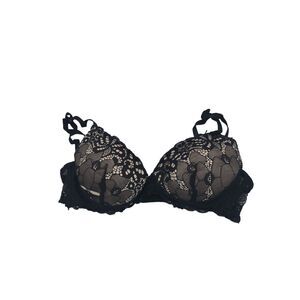 Marilyn Monroe Padded Push Up Bra 34B Womens Underwired Black Lace Overlay