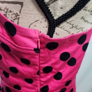 Marilyn Monroe Pink W Black Polka Dots Pleated Dress. Size Large.
