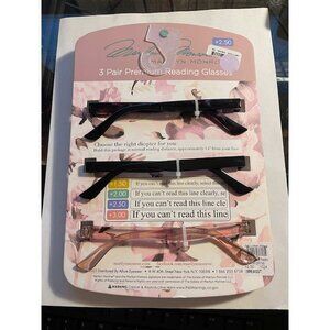 NEW!! Includes three pairs of plastic frame readers in 3 fashionable colors