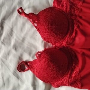 Marilyn Monroe Red Lace Babydoll Chemise Nighti Lingerie, Size: L, 95% polyester, 5% spandex, machine wash cold
