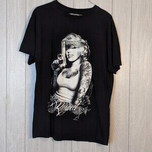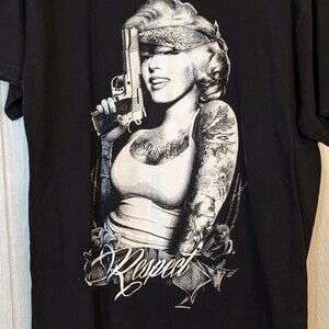Marilyn Monroe Respect Tattoo Surf & Style Black Graphic Tee EUC SZ L