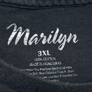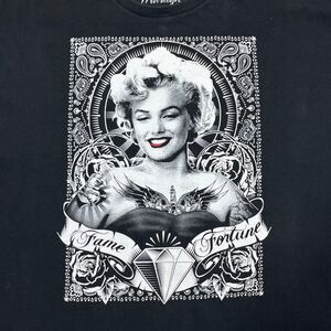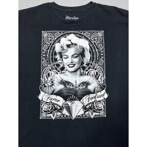 Pre-owned. Gently worn with no major flaws. Fabric is soft and breathable 100% cotton with some light fading from wash, giving it a vintage look. Bold graphic of Marilyn Monroe with "Fame" and "Fortune" text surrounded by roses and diamond motif. Tag marked 3XL. Made in Honduras.