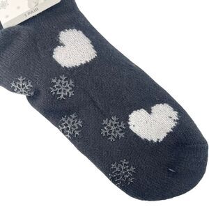 Stay cozy and comfortable in these Marilyn Monroe slipper socks, designed with soft warmth and secure grip. This 1-pair set features a black base with cute white heart details and rubber grip snowflake patterns on the bottom to help prevent slipping.
