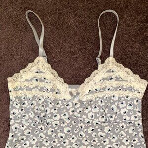 Marilyn Monroe Two Piece Sleepwear Set, Pastel Blue/Gray and White Floral, M