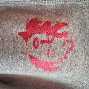 Grey cotton Marilyn Monroe zip up jacket cut high to low. It has a metallic Marilyn Monroe face on the front. It's like brand new. No pilling, no stains, no wear. It's very comfortable and super cute.
