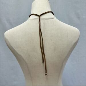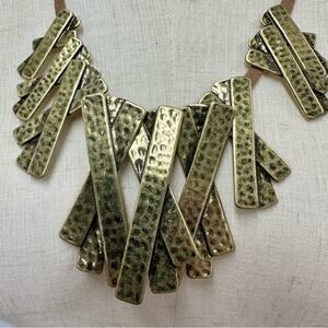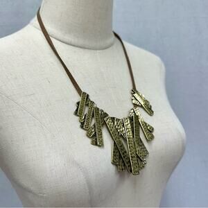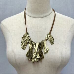 Marilyn Shiff hammered gold tone and leather statement bib adjustable necklace