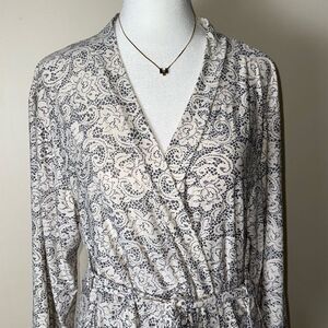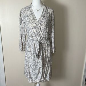 Marilyn Monroe L Ivory Gray Lace Rose Print Floral Tie Front Intimate Robe