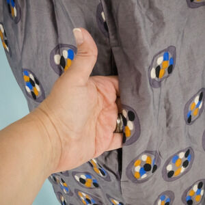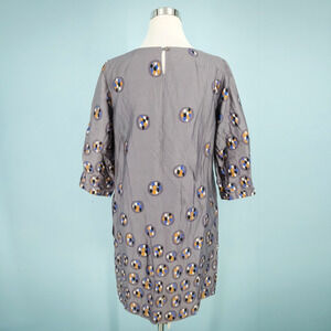 Marimekko 38 Size Medium M Grey Gray Circle Print Crew Neck Short Elbow Length Sleeves Sheath Lined Cotton Polyester Viscose Blend Dress