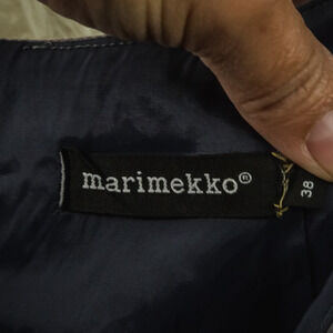 Marimekko 38 Size Medium M Gray Print Crew Neck Short Elbow Sleeve Cotton Dress