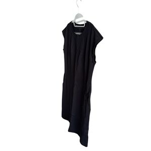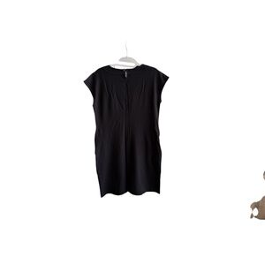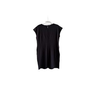 This sleek black sheath dress by Marimekko features a classic crew neck and cap sleeves, making it perfect for work or a night out. Its minimalist design and mini length offer a versatile and stylish option for various occasions.
