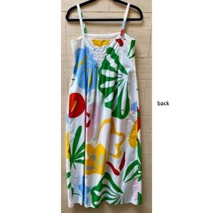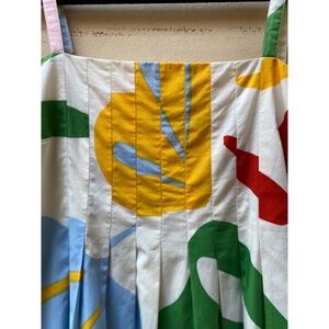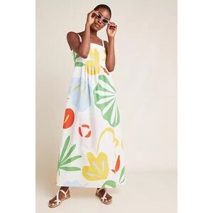 The spaghetti strap dress has a slightly widening cut to the hemline at the ankle, a concealed zipper at the side seam and decorative box pleats that are sewn on the front and the back.