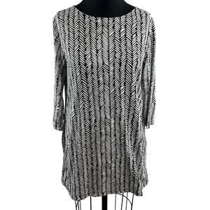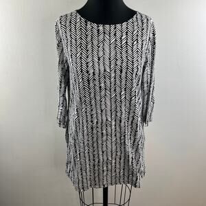 Marimekko White Black Tunic Top Cotton 3/4 Sleeves Round Neckline Size S Small