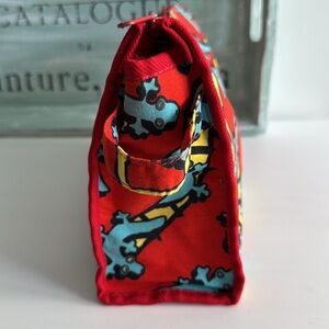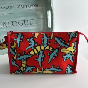 Marimekko Red Toiletry Pouch with Blue and Yellow Lizard Animal Print