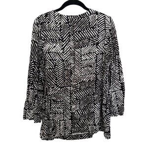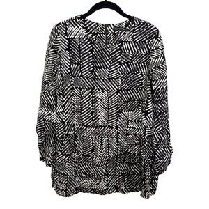 Black White Patterned Crepe Long Sleeve.