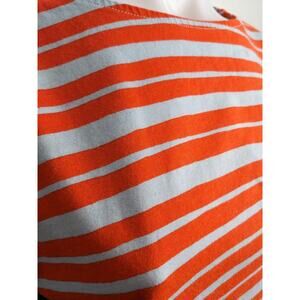 Marimekko UniqloSize Small Crew Neck Tee T-Shirt Orange Light Blue Striped Half Sleeves