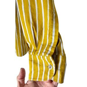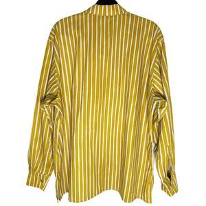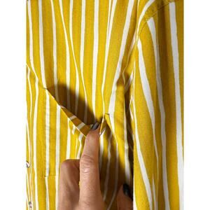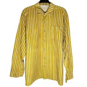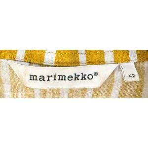 Marimekko Women’s Men’s Unisex Jokapoika Piccolo Print Gold Off White Stripe Button Down Shirt Cotton Oversized Lagenlook