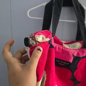 Keywords: Marimekko tote, Unikko flower bag, Marimekko x Avon, Finnish design, poppy print bag, pink floral tote, modernist style, Y2K designer tote, charity collab, Marimekko purse, statement handbag.