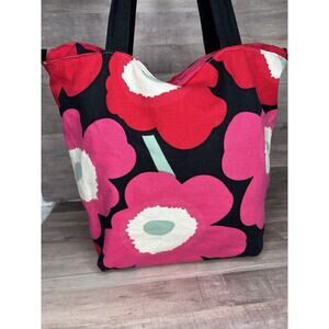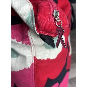 Marimekko red pink poppy floral canvas tote bag breast cancer awareness