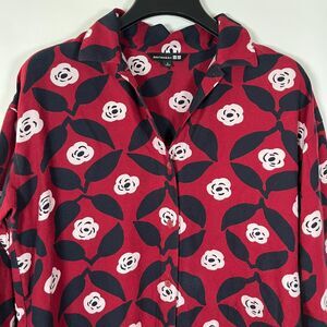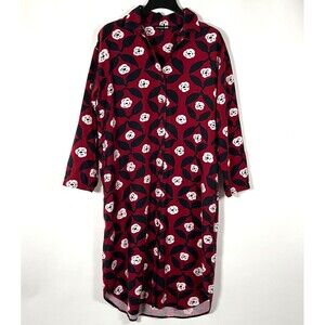 Marimekko x Uniqlo Midi Shirt Dress Floral Long Sleeve Flannel Red Small Pockets
