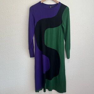 Marimekko x Uniqlo Purple and Green Long Sleeve Sheath Dress Midi Artsy Boho