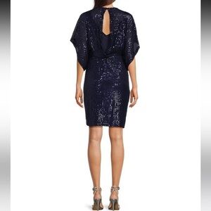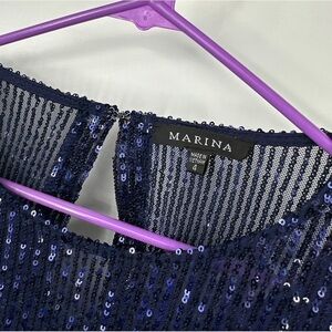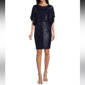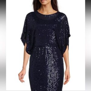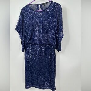 Marina Allover Sequin Boat Neck Dolman Sleeve Blouson Sheath Dress Sz 4 $139