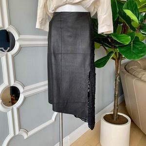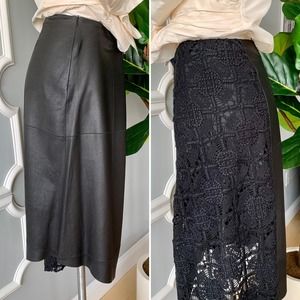 Marina Babini Leather and Wool Crochet Asymmetrical Midi Skirt Size 44