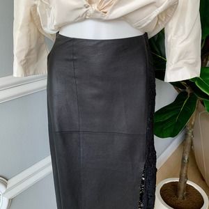 Marina Babini Leather and Wool Crochet Asymmetrical Midi Skirt Size Medium