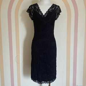 Marina Black Lace and Beaded Formal Cocktail Dress Size 6