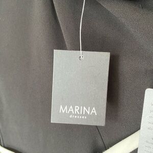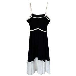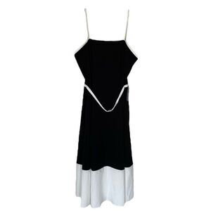 Marina Black White Color Block Belted A-Line Midi Party Dress NWT Size Large