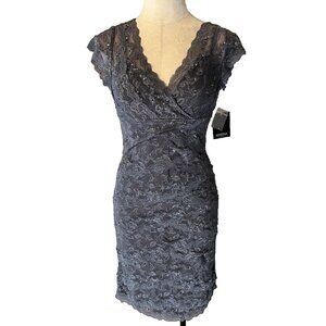 Marina Dress 12P Gunmetal Sequin Lace Stretch Party Cruise Wedding Date NEW
