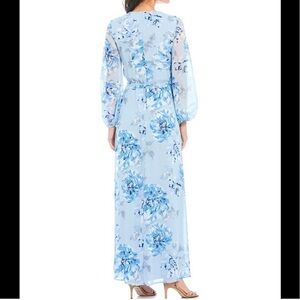 Marina Floral Wrap Maxi Dress Chiffon Long Sleeve Slit V Neck Blue Size 6