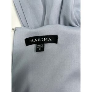 Marina Lace Bodice Evening Maxi Gown Dress Women's Size 6 Sleeveless in a pearl gray color. Perfect mother of the bride or any formal occasion maxi dress