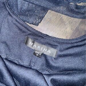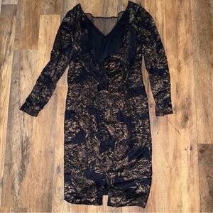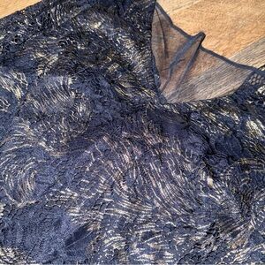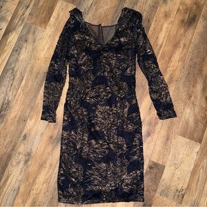 Marina Lace Dress Size 4 Layered Navy Gold Lace Knee Length Sleeves Date Night Formal