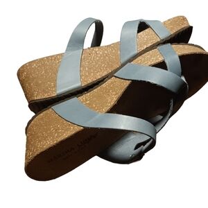 Marina Luna Blue Leather Wedges Sandals Ladies Size 9