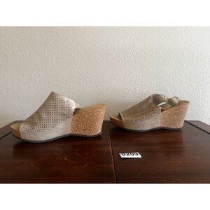 Marina Luna Comfort Wedge Sandals Platform Womens Sz 8/Eu38 Beige Suede Leather