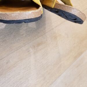 Chic Marina Luna mules in mustard suede. Ideal for casual wear. Comfortable and stylish.