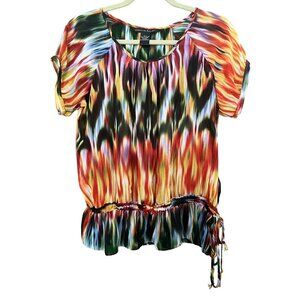 Marina Luna Women's Tie-Dye Top Blouse Size S Rainbow Splatter Design Semi Sheer