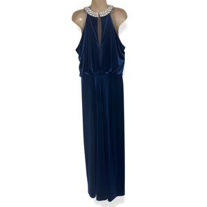 Marina Midnight Blue Velvet Blouson Embellished Long Gown Size 16W 1X Dress Plus