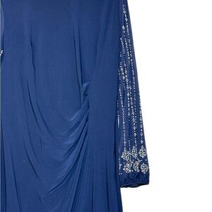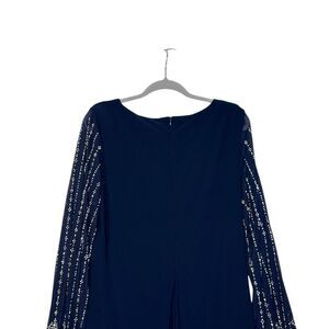 Marina Navy Blue V Neck Beaded Ruched Midi Cocktail Dress | Size 16