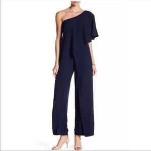 Marina Navy One Shoulder Flow Jumpsuit Sz 4