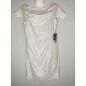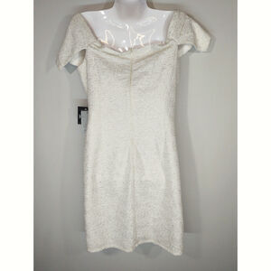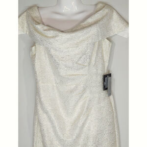 NWT Marina Off-the-Shoulder Metallic Knit Shirred Womens Dress
