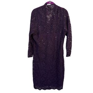 Marina Purple Sequin Lace Sheath Dress 14W Plus Size Cocktail Party Formal Midi