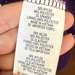 • Shell: 58% Nylon, 40% Polyester, 2% Spandex